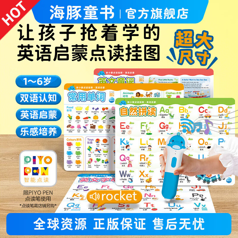 【点读版】豚小蒙点读挂图 英语启蒙幼小衔接启蒙百科国学启蒙 1-3-6岁儿童启蒙早教 支持小鸡球球豚小蒙点读笔 英语启蒙(全4张)