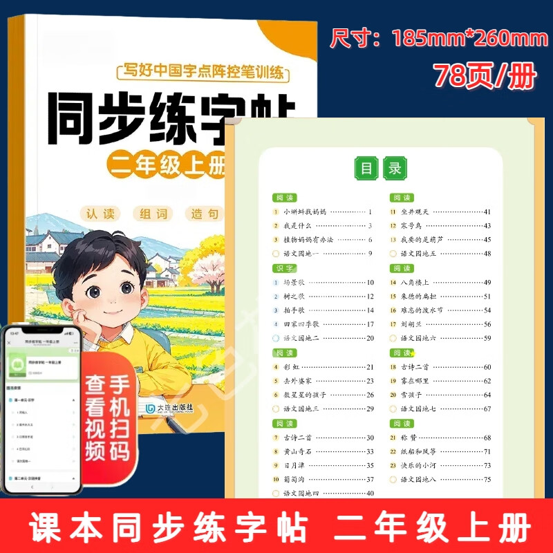 二年级上下册同步练字帖教材同步人教版点阵控笔训练 【纸质加厚大字大格】同步字帖(上册)
