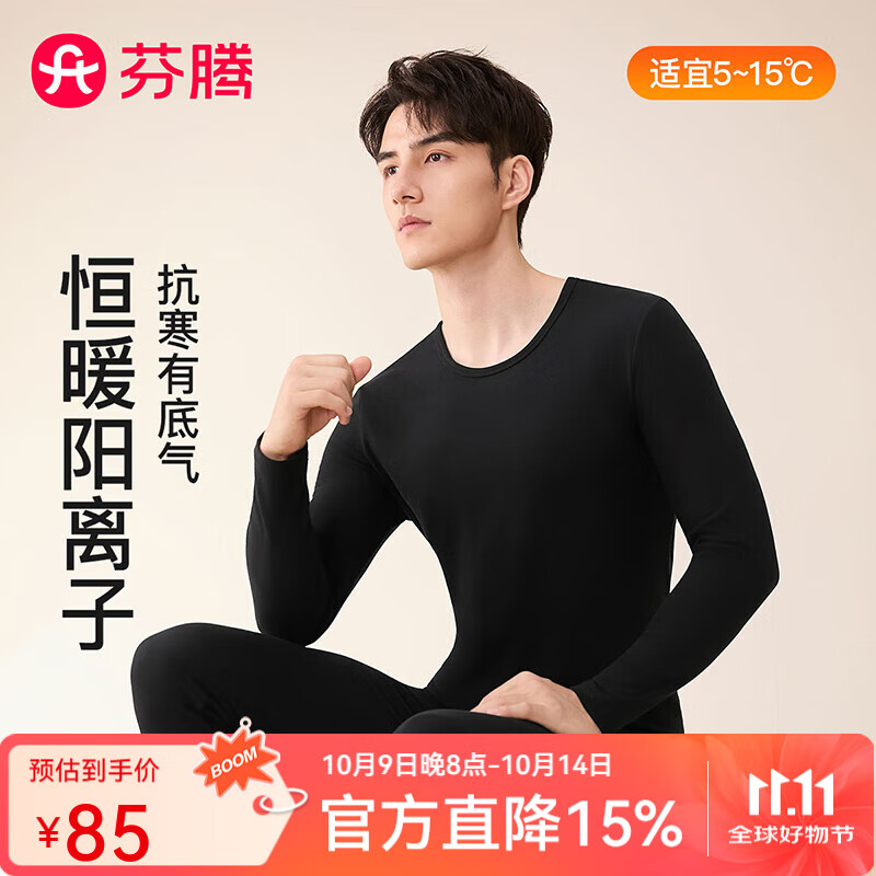 芬腾保暖内衣男2025恒暖阳离子柔和磨绒圆领高弹套装打底衣男秋衣秋裤 黑色 2XL