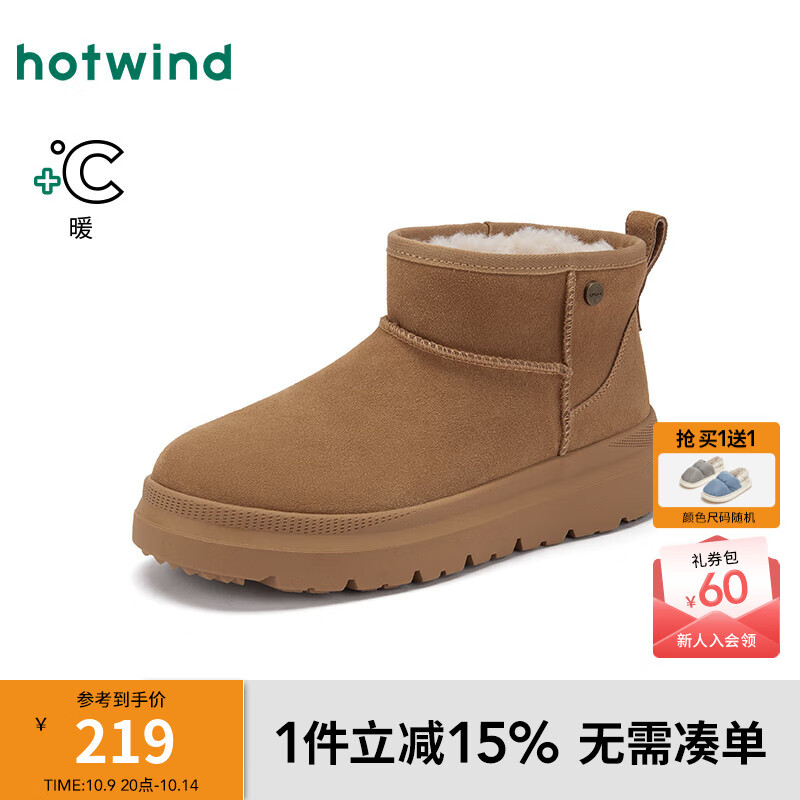热风男鞋2025年冬季新款男士加绒保暖雪地靴百搭杏色短筒男靴子 08杏色 38