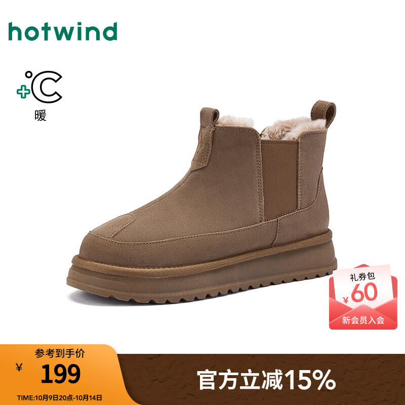 热风(Hotwind)男鞋2025冬季新款男士时尚靴子休闲雪地靴切尔西靴加绒短筒靴 08杏色 38