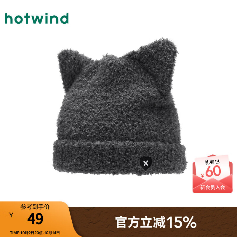 热风(Hotwind)女士帽子2025年冬季新款猫耳毛线帽美拉德加厚护耳保暖帽子 09灰色 56-60cm