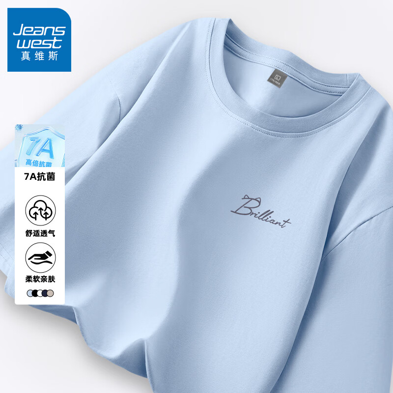 真维斯(Jeanswest)短袖T恤男凉感抗菌休闲圆领t恤通勤潮2026夏季户外设计感印花上衣 冰蓝 最特别的 M