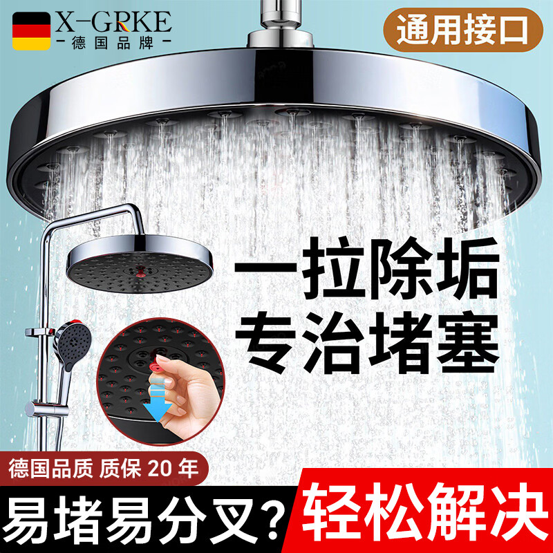X-GRKE【德国】增压淋浴花洒顶喷家用浴室一键除垢花洒喷头沐浴顶喷头 圆形【一拉除垢】增压顶喷-亮银 全新除垢顶喷丨堵塞分叉问题轻松解决