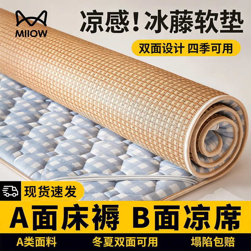 猫人(MiiOW)夏季凉席床垫遮盖物褥子双面可用竹席家用藤席草席子冬夏软垫宿舍 双面玉米格【冬夏双面两用】 1.8m*2m【四季通用】