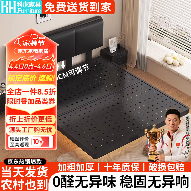 科虎悬浮床1.8米x2米双人床主卧大床铁艺软包床 【炫酷黑】悬浮床 150*200cm
