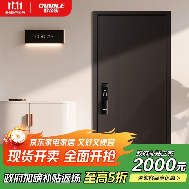 新款4级甲级防盗门入户门静享+隐藏加高门楣隔音静音门+全水发泡子母门 机械锁 1970/2050*960/860
