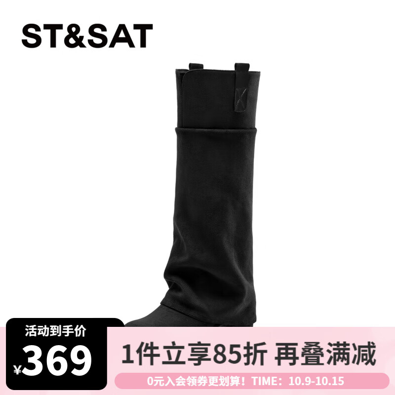 星期六时尚百搭英伦风女靴2025冬季新款保暖时装长靴MTSSD4117C7L 黑色 35