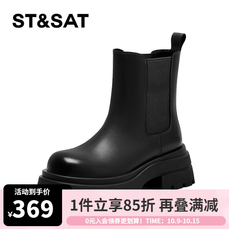 星期六时尚圆头厚底显高切尔西靴2025冬季新款百搭女靴MTSSD4116CAV 黑色 37