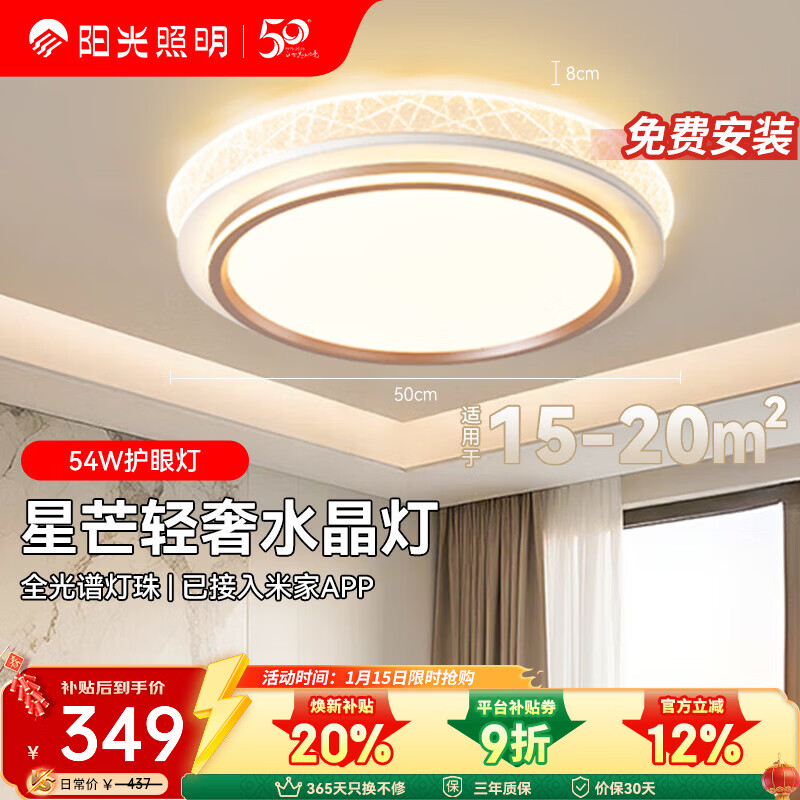阳光照明 LED全光谱护眼 新款客厅大灯 卧室吸顶灯 焕新补贴灯具 【包安装】星芒丨54w卧室圆灯丨已接入米家APP