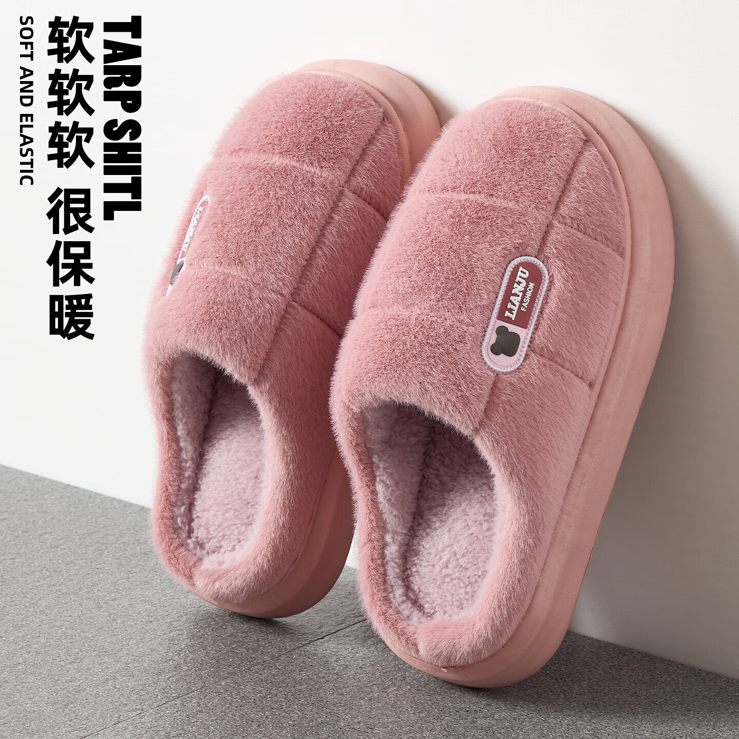 FZT棉拖鞋女2025秋冬新款保暖加绒防滑防臭厚底简约居家外穿棉拖鞋男 紫色 36-37 适合35-36【内长220mm】