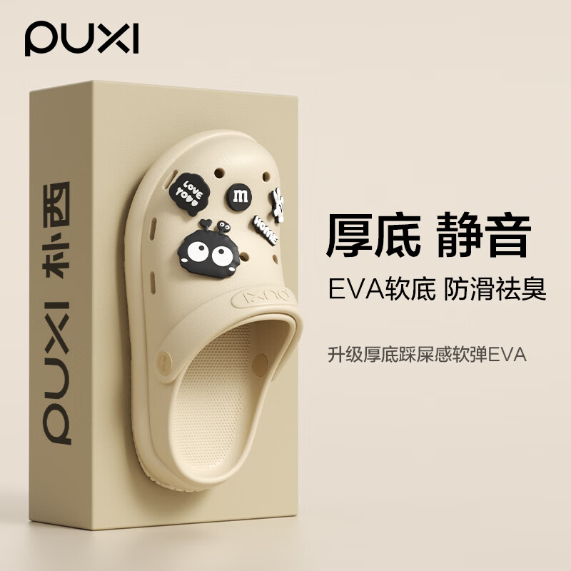 朴西2025新款洞洞鞋女户外穿厚底夏季不臭脚增高透气防滑凉拖鞋男 浅沙色+煤球 35-36
