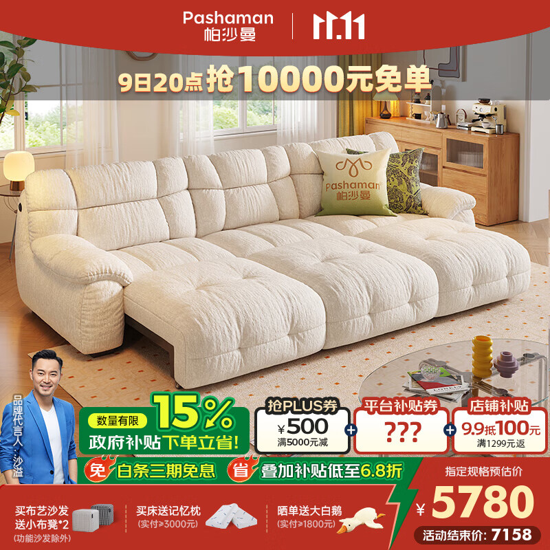 帕沙曼电动沙发布艺现代简约小户型客厅25年新款菠萝包多功能沙发2889ZF 【天猫精灵语音+遥控】3.06米多人位·三功能 【豪华版】无氟防水雪尼尔JC955 (记忆棉+竹炭海绵)