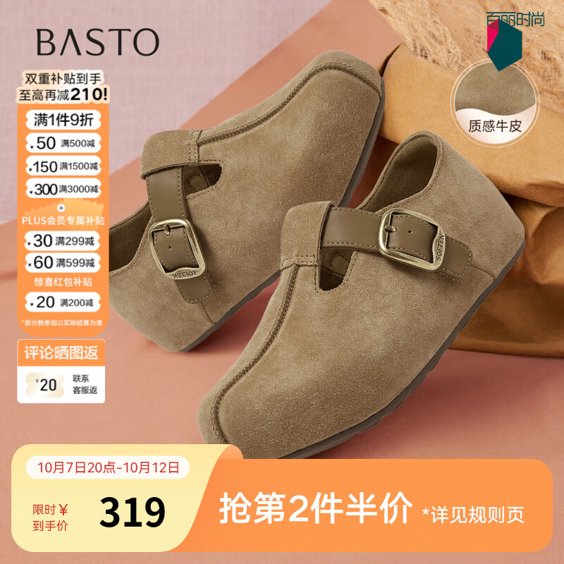 百思图2026春季新款商场同款勃肯鞋时尚复古休闲女单鞋B9539AM6 驼色 37