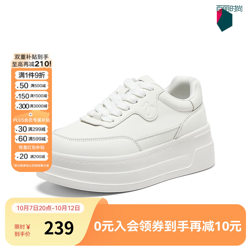 百思图2025秋季新款轻便厚底增高小白鞋运动鞋女休闲鞋L9097CM5 米白色 38