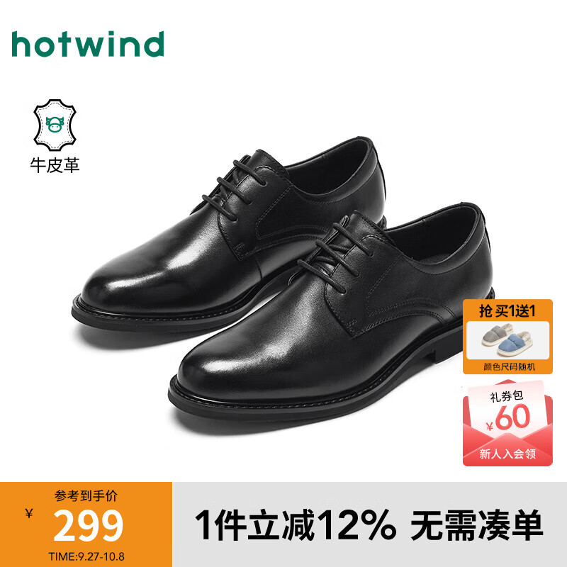 热风男鞋2025年秋季新款男士时尚单鞋商务正装皮鞋黑色婚鞋德比鞋 01黑色 (牛头层皮革) 44