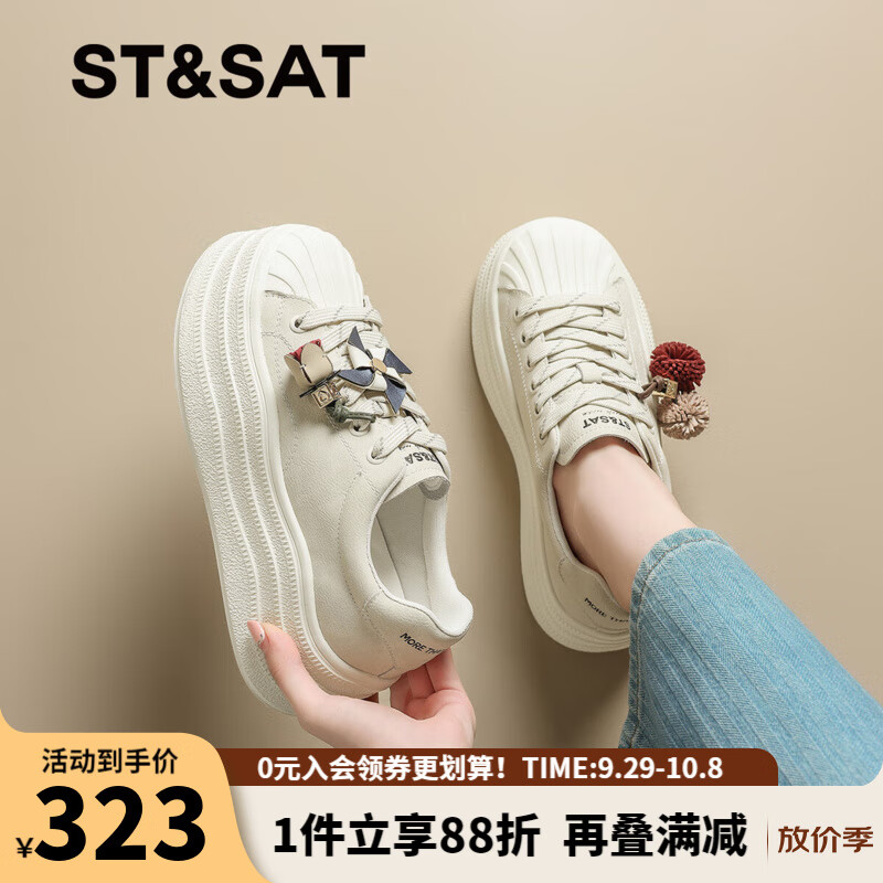 星期六(St&Sat)时尚厚底贝壳头板鞋运动休闲轻便跑步鞋女鞋轻奢鞋子JXSSD3112CB0 白色 37