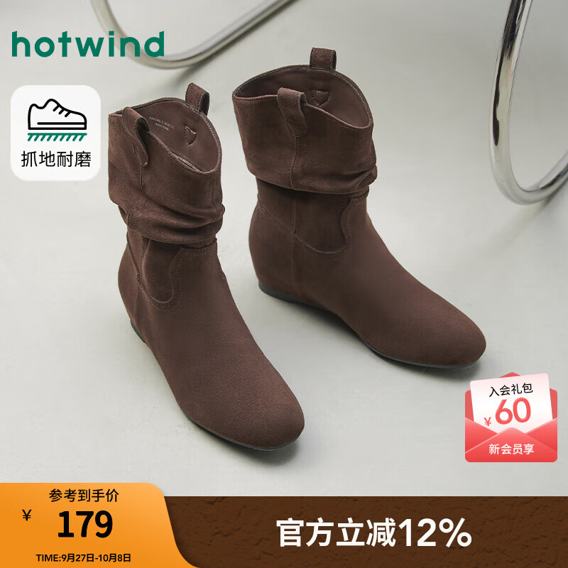 热风西部牛仔靴2025年冬季新款棕色堆堆靴美拉德靴子百搭短靴女鞋 02棕色 38