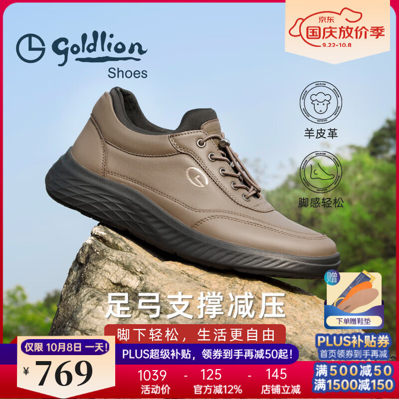 金利来(Goldlion)男鞋小羊皮革运动鞋户外厚底增高休闲鞋老爹鞋跑步鞋健步鞋皮鞋男 卡其色 42