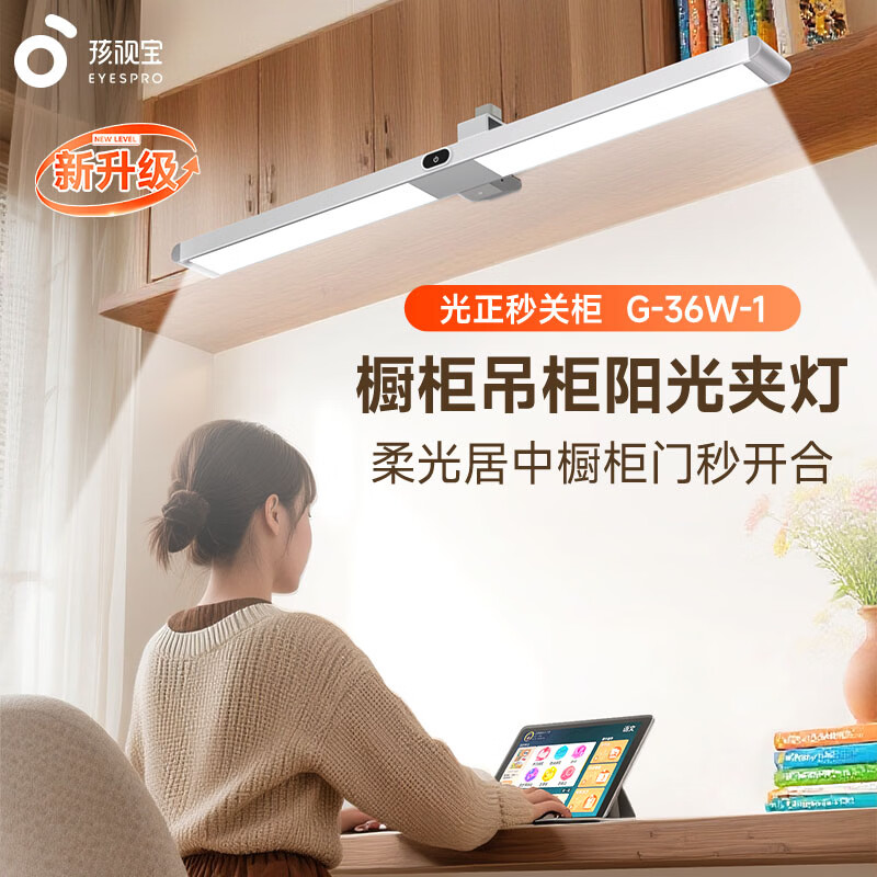 孩视宝夹式护眼台灯全光谱大路灯悬挂壁挂书桌吊柜学生儿童学习阅读灯 【升级工字夹】适配带柜门吊柜 G-36W-1