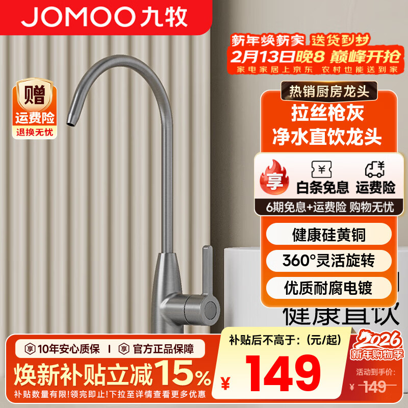 九牧(JOMOO)单冷厨房水龙头净水龙头净水器水龙头可旋转直饮水龙头 【枪灰】硅黄铜净水龙头79007