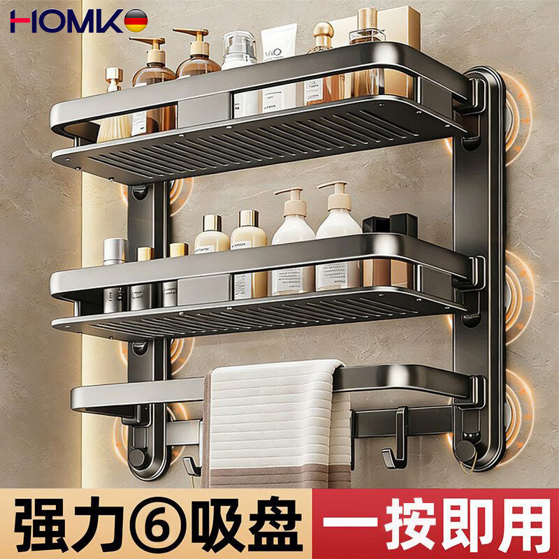 HOMK【德国】吸盘浴室置物架免打孔厕所洗手间收纳卫生间墙上毛巾挂架 【超大空间】免钉毛巾架50CM 免钉安装丨加厚材质丨强效吸力