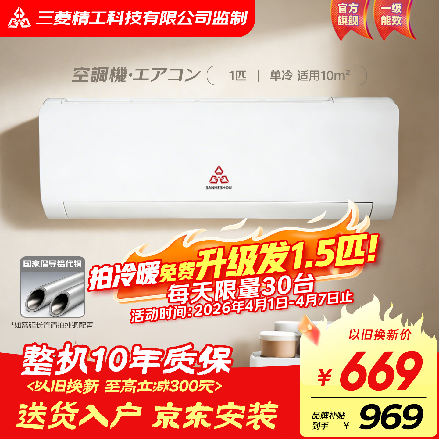 SANHESHOU三三凌空调 正品 新一级能效 品牌压缩机 大1.5匹大1匹挂机 冷暖变频超省电 家用壁挂式 以旧换新 1匹 新国标一级 单冷【京东安装】