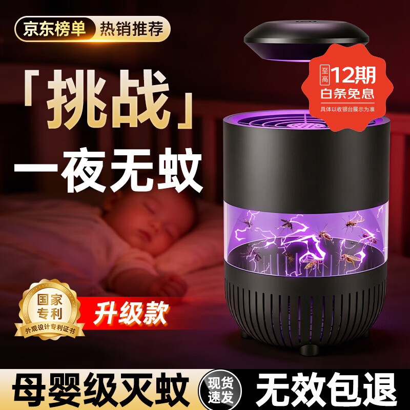 振牛灭蚊灯2026新款家用驱蚊神器强力诱捕吸电防蚊虫静音杀苍蝇专用 黑色强效母婴级灭蚊灯 特研专利 大面积灭蚊 8代超静音