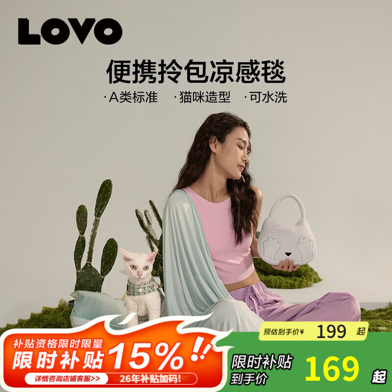 LOVO罗莱生活旗下品牌 夏季凉感A类盖被夏凉空调毯子办公室盖毯 【A类可水洗+便携拎包】凉感毯-粉 130*180cm