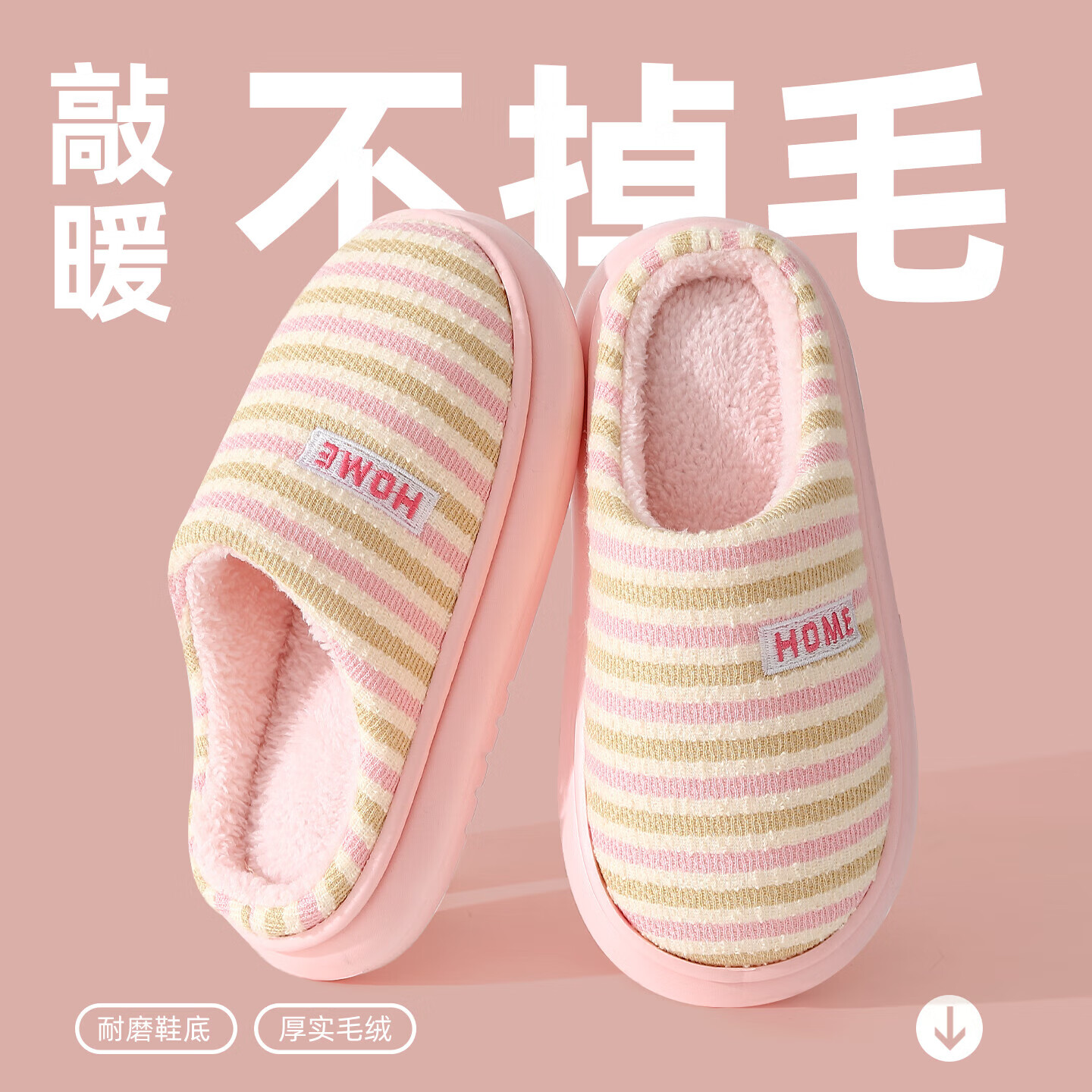 FZT踩屎感棉拖鞋女款2025冬季新款室内家居加绒保暖超静音棉拖鞋男士 粉色 36-37 正码【内长230mm】