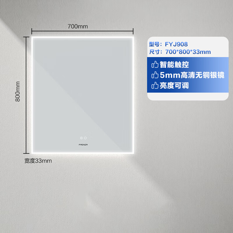 法恩莎【智能镜】卫浴大容量收纳单独高清智能除雾一体浴室镜柜挂墙式 触控可调光方镜-70cm
