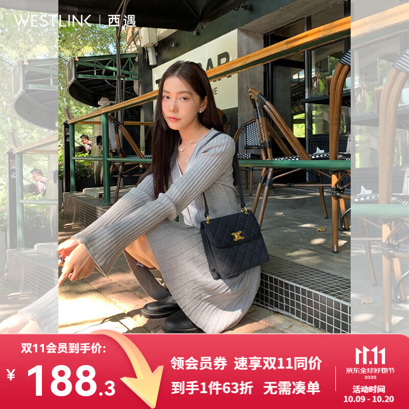 西遇(Westlink)西遇V领长袖针织衫套装女2025年秋季新款韩系百褶半身裙两件套 灰色 (预售15天) M (160)