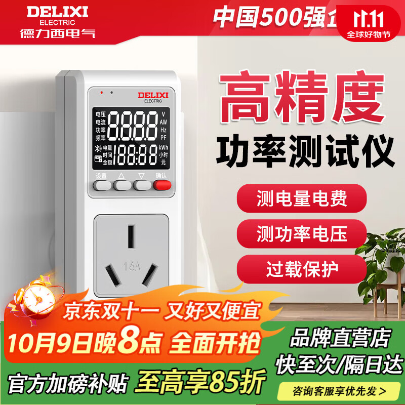 德力西电气家用计量插座高精度监测电量功率电表功耗仪功率测试仪电费计度器 无背光10A|常规插头(适用小家电等) 【免费开票/售后无忧】