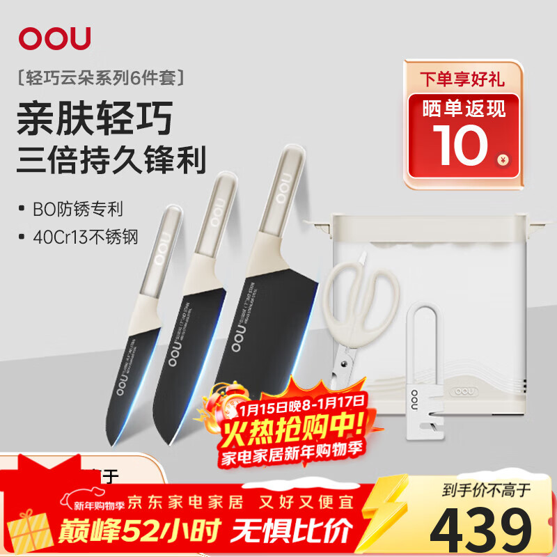 OOU刀具厨房套装菜刀家用厨刀厨具全套厨师切菜刀剪刀云朵系列5件套