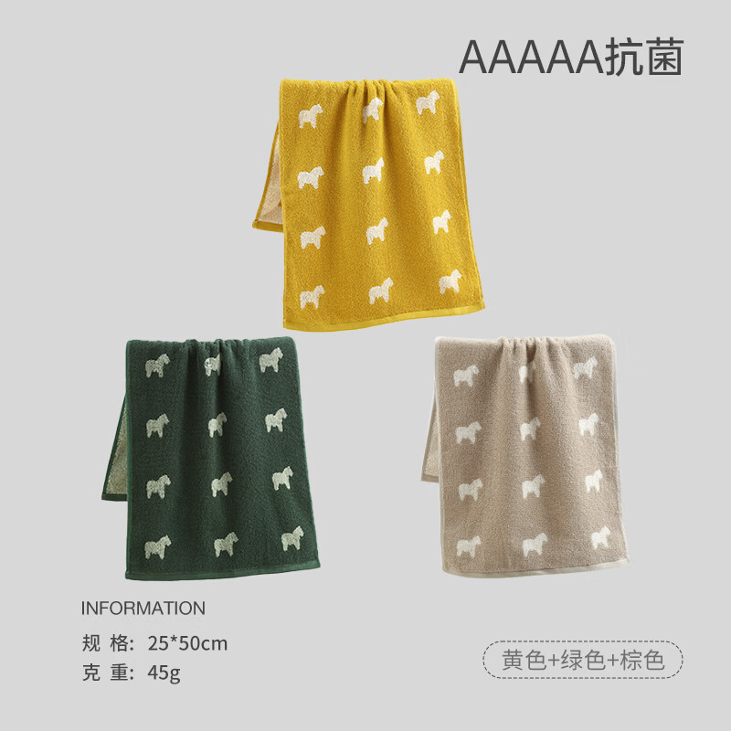 无印良品毛巾儿童纯棉可爱卡通洗脸巾吸水全棉不易掉毛宝宝洗澡巾童巾 【云柔触感 柔软亲肤】黄色小马+绿色小马+棕色小马 3条 25x50cm