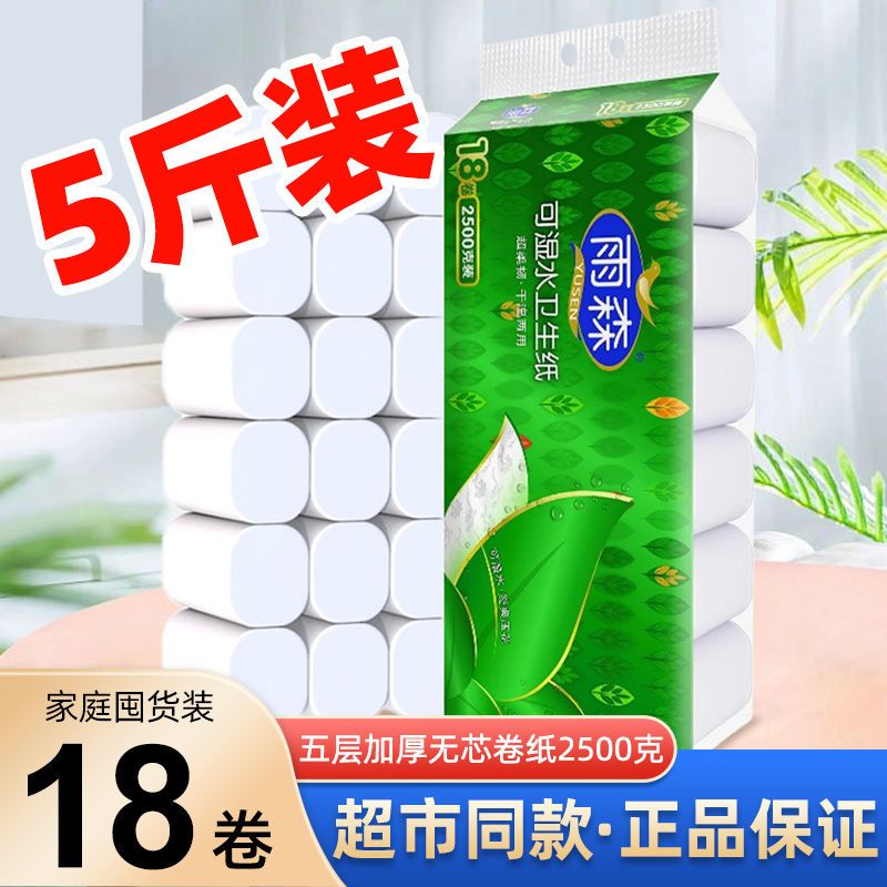 AILUKI【5斤18卷5层】雨森卫生纸卷纸可湿水卷筒纸家庭装无芯纸妇婴用纸 雨森可湿水卫生纸18卷【5斤装】