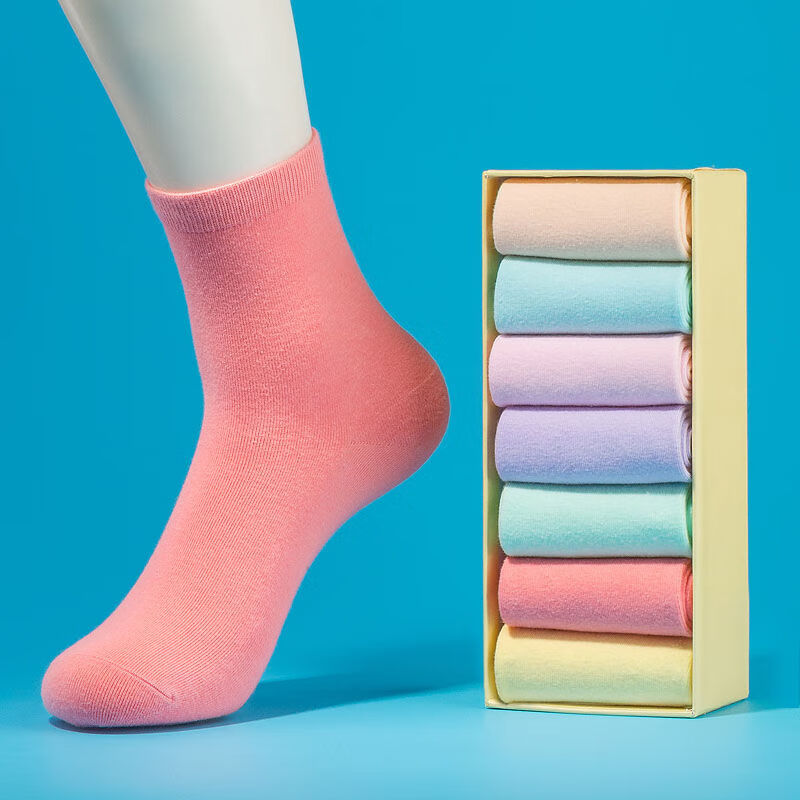 AILUKI袜子女中筒袜春秋季女士棉袜糖果色女袜纯色黑色白色长筒秋冬长袜 1240女中筒(7双混色) 35-40均码