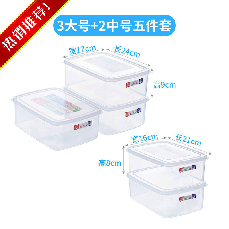 DEATKN冰箱收纳保鲜盒塑料微波炉饭盒密封盒便携分隔便当盒水果盒储物盒 方形五件套【3个大号+2个中号】热卖 5个装【超值热卖】