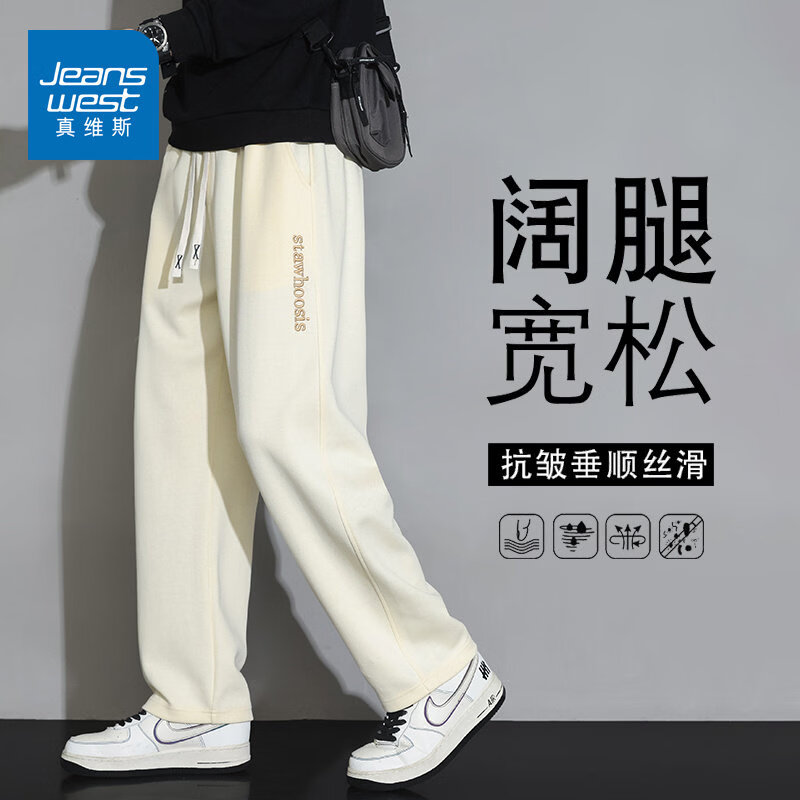 真维斯(Jeanswest)2026直筒刺绣休闲长裤男士春季痞帅运动装宽松舒适男装休闲长裤子 米黄 【舒适柔软】 M 【建议】
