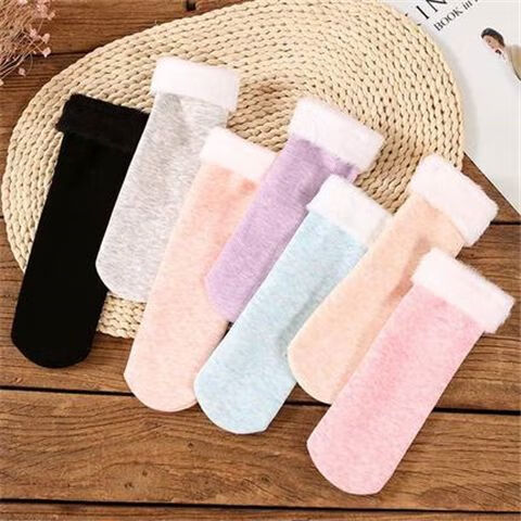 AILUKI雪地袜子女秋冬季加厚加绒中筒加棉长袜月子袜保暖防寒毛巾地板袜 混搭(多色不重色) 均码34-42码【6双装】