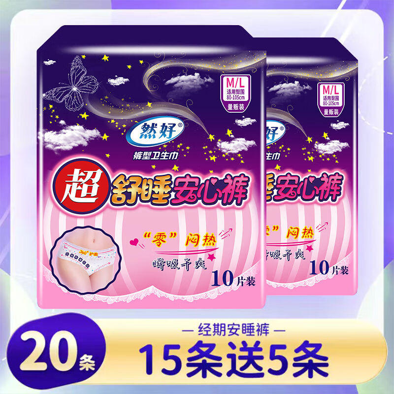 AILUKI【超熟睡】防侧漏安心裤型卫生巾透气干爽安睡裤经期女夜用姨妈巾 15送5-经期安睡裤【共20条】 【M-L码】建议体重80-150斤