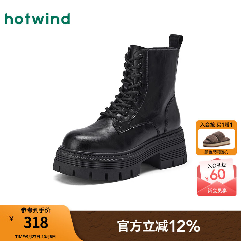 热风厚底马丁靴女2025年冬季新款增高休闲短靴百搭时装靴子女鞋子 01黑色 38