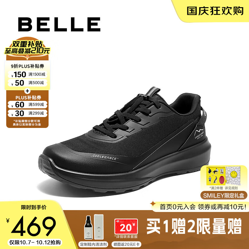 百丽厚底增高健步鞋男2025新款秋商场同款户外休闲运动鞋L6015CM5 黑色 41 (255mm)