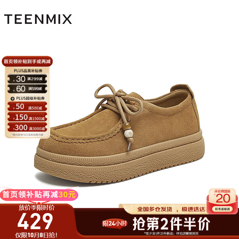 天美意牛津鞋商场同款厚底女鞋复古系带女单鞋2025秋新款BL871CM5 驼色 39