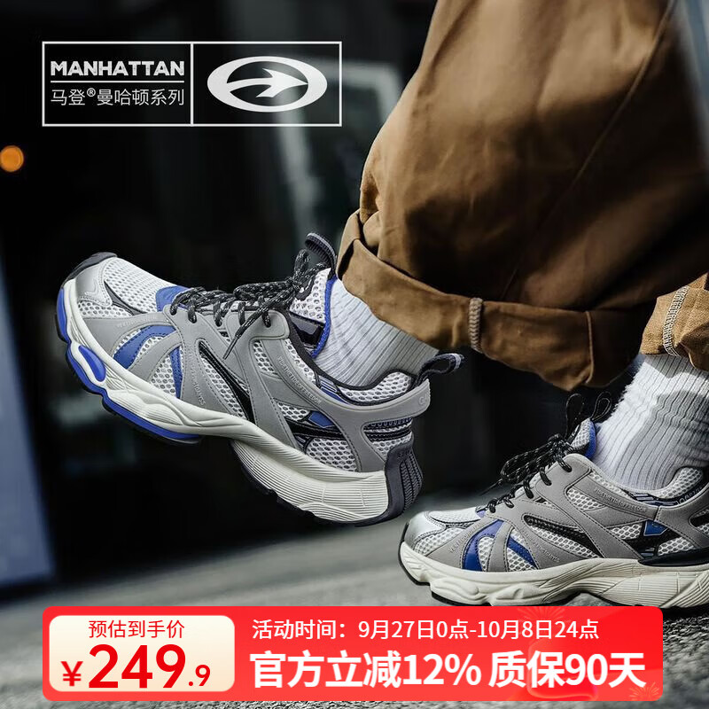 马登曼哈顿2025秋季新款高级感复古潮流老爹鞋厚底波鞋男士运动休闲鞋 风暴蓝 45