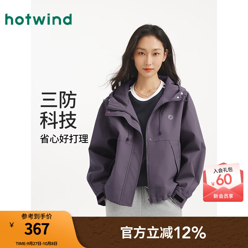 热风【商场同款】女士夹克户外运动机能风三防外套2025年秋款连帽外套 11紫色 S
