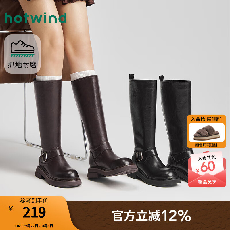 热风复古骑士靴女2025年冬季新款百搭长筒靴子黑色时装靴女鞋子 01黑色 36