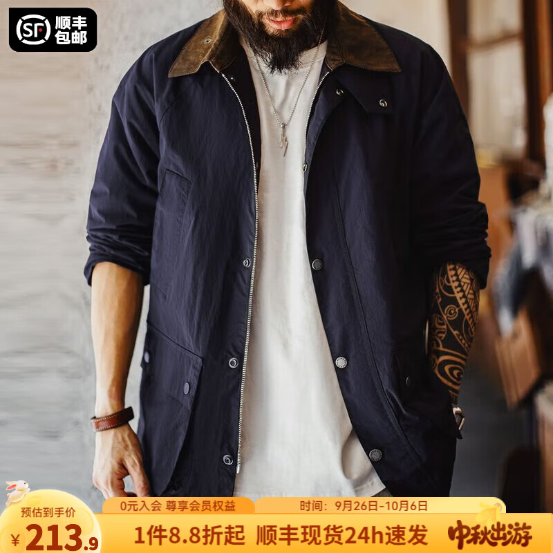 马登工装美式复古夹克Safari游猎装上衣防水蓝色vintage风衣外套男秋 海军蓝 XL