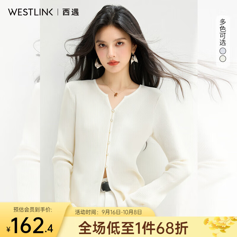 西遇(Westlink)修身长袖针织衫女2025年秋季新款v领单排扣显瘦内搭打底毛衣 米白色 (预售15天) M (160)