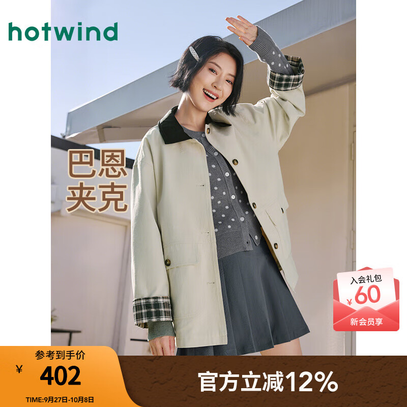 热风【商场同款】女士风衣25年秋新款巴恩风复古感翻领撞色廓形外套 08杏色 S